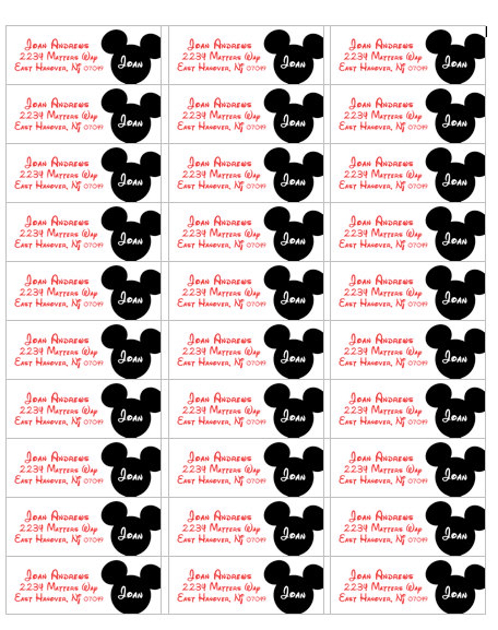 Mickey Mouse Labels Address Return Labels Personalized Etsy
